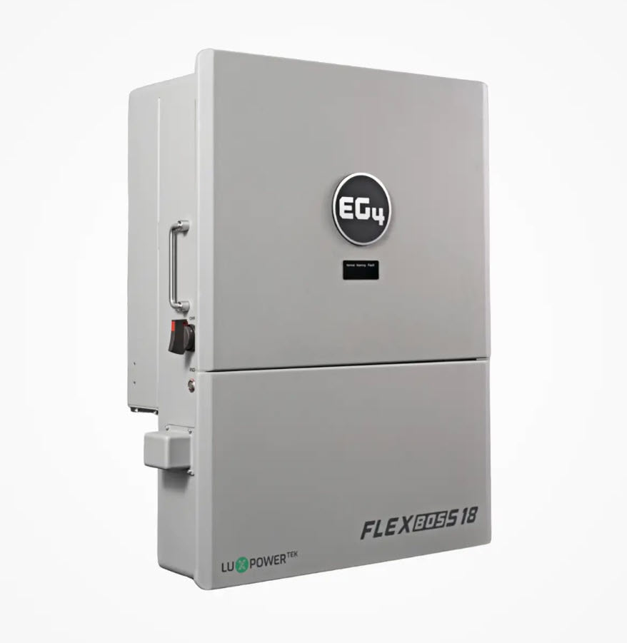 EG4, FlexBOSS18, 13kW AC Hybrid Inverter, 18kW PV Input, 13kW On-Grid AC Output, 60Hz, 48VDC, 120-240Vac Split-Phase, Transformerless Sine Wave, 2 MPPT PV Inputs, 600VDC Max, Built-In RSD, NEMA 4X, 10 Year Warranty, EG4INVFLXBOSS18V1