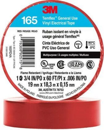 165RD4A General Use Vinyl Electrical Tape, Multi-Purpose, Red, 3/4" x 60'