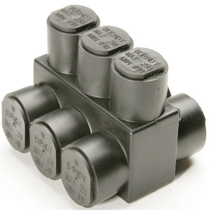 1PLD2503 Multi-Tap Connector, 3-Port, Black, Insulated, 10 AWG - 250 MCM, 2-Sided
