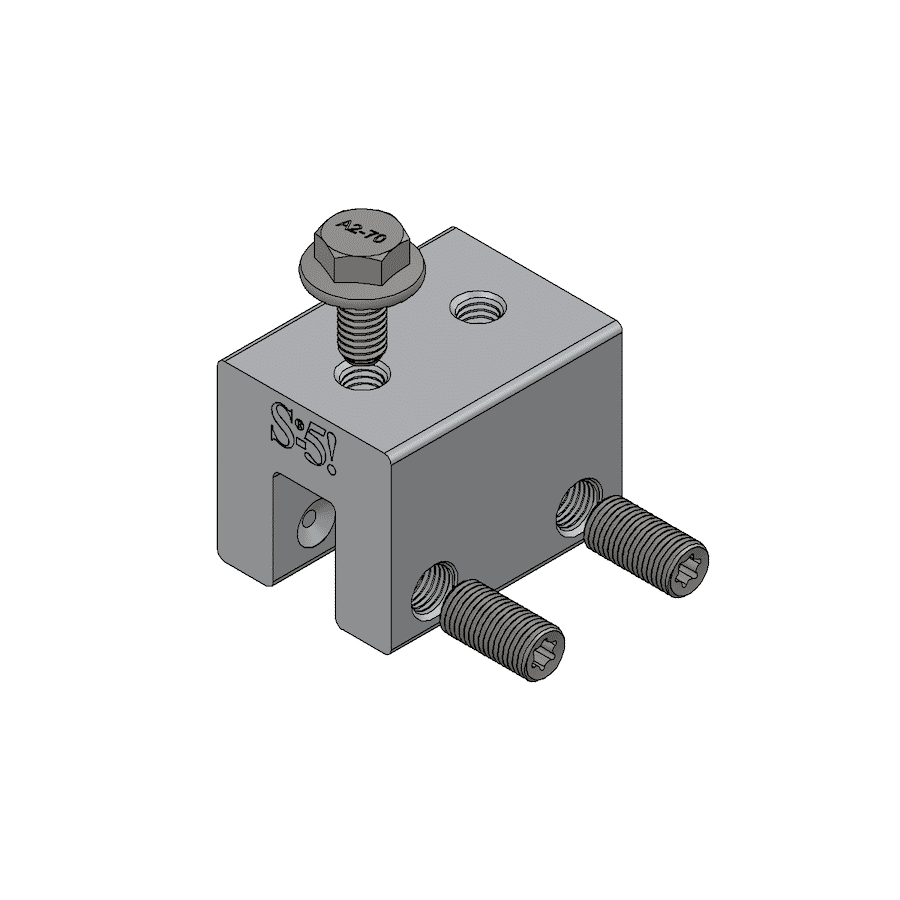 Its simple design and ample size make it so strong and versatile it can be used with S-5!® snow retention products such as ColorGard and other heavy-duty applications. The S-5-S clamp comes complete with two [2] 3/8"x24 x 0.80" round nose set screws and one [1] M8-1.25 x 16mm Hex Flange Bolt. All hardware is stainless steel.