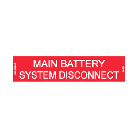 Solar Label; Type: Main Battery System Disconnect; Dimensions: 4 x 1 In.; Color: Red Background, White Letters; Approvals: UL 94 Tested
