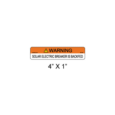 Solar Label; Type: Solar Breaker Warning; Dimensions: 4 L x 1 W In.; Color: Orange; Height, Letter: 1/4 In.; Approvals: UL