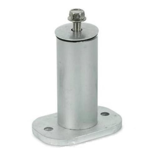 - Highlights - Aluminum with a clear anodized finish. One per L-foot should be used. Aluminum extrusion in two parts. Three standard heights are available: 3, 4, 6, and 7 inches. 3/8" is included "Two 5/16" lag bolts and a 3/4" serrated flange bolt with EPDM washer for connecting the L-foot. 1-5/8" outside diameter of the shaft ".