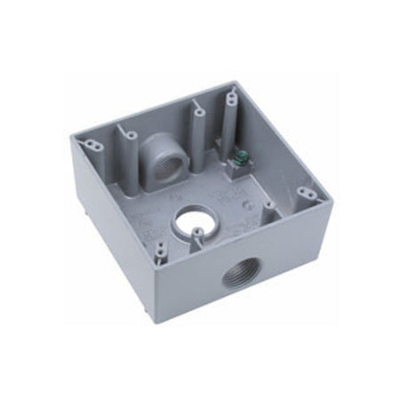 Boxes - Weatherproof - 2-Gang Boxes - Metallic; Gangs: 2-Gang; Depth: 2.24 In.; Material: Aluminum; Color: Gray; Mounting Type: Knockouts/Lugs; Type: Cover; Approvals: UL, CSA