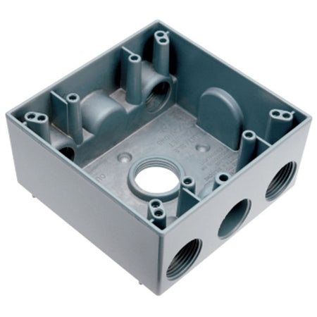 Boxes - Weatherproof - 2-Gang Boxes - Metallic; Gangs: 2-Gang; Depth: 2.24 In.; Material: Aluminum; Color: Gray; Mounting Type: Knockouts/Lugs; Type: Box; Approvals: UL, CSA